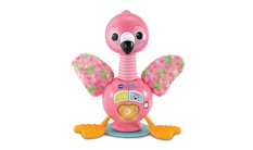 Adorable flamingo toy with lights, music, textures, and movement. Encourages sensory exploration, fine motor skills, and playtime fun with a secure highchair suction base.